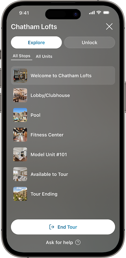 Tour24’s Vacant Unit Management (VUM) puts leasing teams in full control of the tour experience – no extra manual work required. With VUM, teams can easily add or remove units from the self-guided tour path, customize directions, and assign beacons for seamless wayfinding.